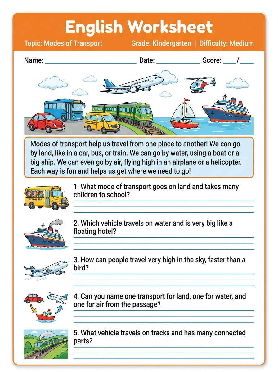 Our AI creates a fully illustrated, structured worksheet — questions, images, and the perfect layout for that age group.