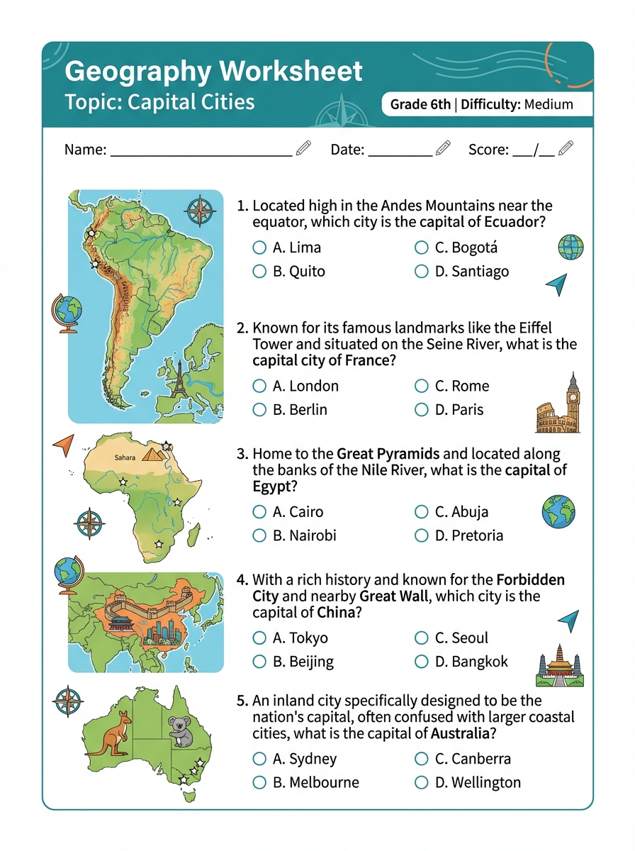 Describe your topic, pick your grade, and get a beautifully illustrated, print-ready worksheet in a couple of minutes. No design skills. No templates. Just magic.